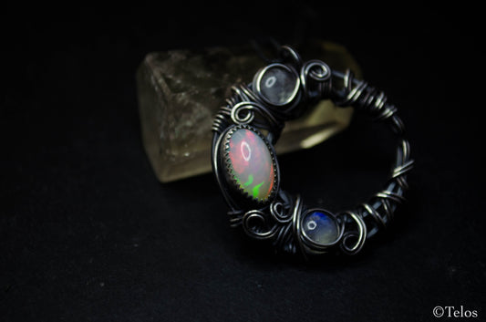 Sterling Silver Opal crescent moon necklace